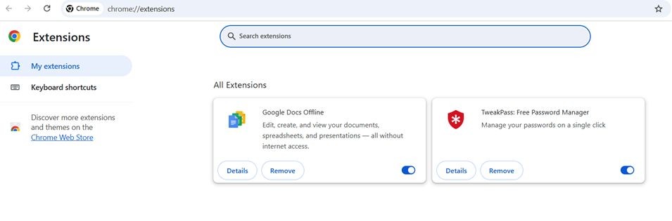 - Remove unused or suspicious browser extensions.