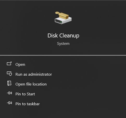 - Open Disk Cleanup by typing it in the search bar.