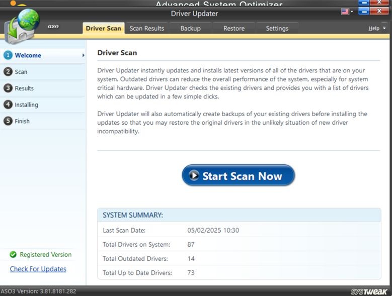 - For convenience and better safety try using Advanced System Optimizer’s Driver Updater feature This will automatically scan and update all your drivers with just one click so you don’t have to manually do that all the time.