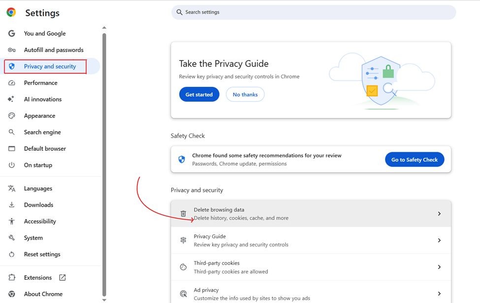 - Clear cache and cookies regularly from browser settings.