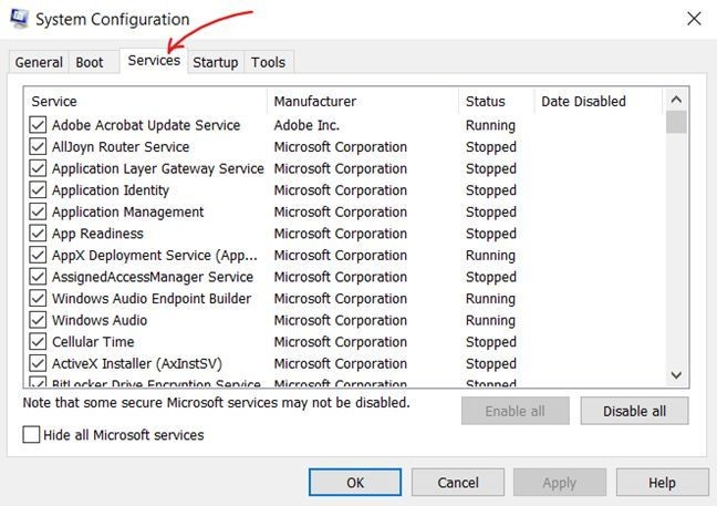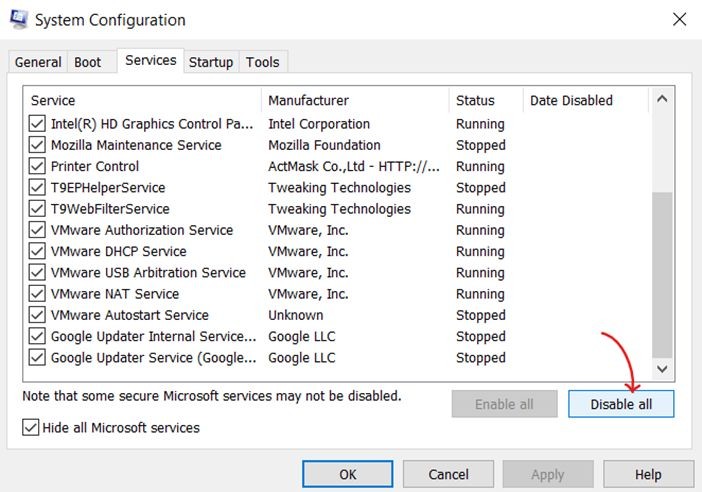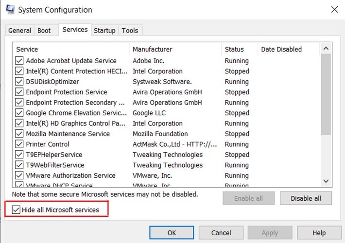- Then check “Hide all Microsoft services”