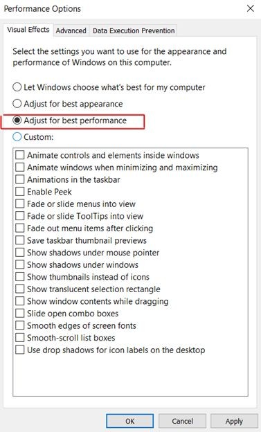 - Select Adjust for best performance and click OK.