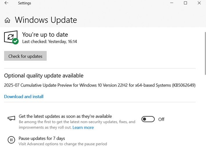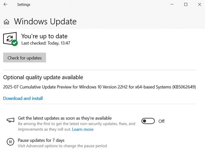 - Click Check for updates and install all available updates.